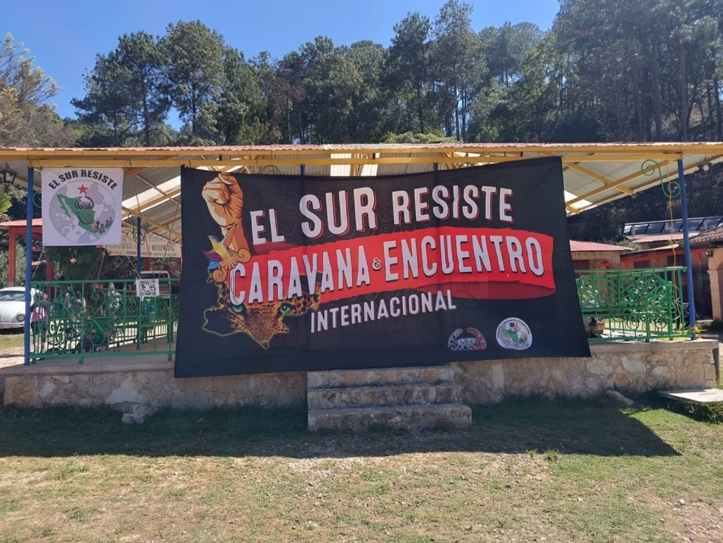 Durante el encuentro, más de 1.200 personas, entre ellas una representante de Entrepueblos, se encontraron para “visibilizar el despojo de territorios a nivel nacional y mundial por empresas y proyectos capitalistas, y extractivistas; la violencia que viven los Pueblos Originarios, las mujeres, las infancias como resultado de las guerras y la violencia del crimen organizado; y la imposición de megaproyectos que destruyen el medio ambiente en todo el mundo“, tal y como explica la organización de El Sur Resiste.