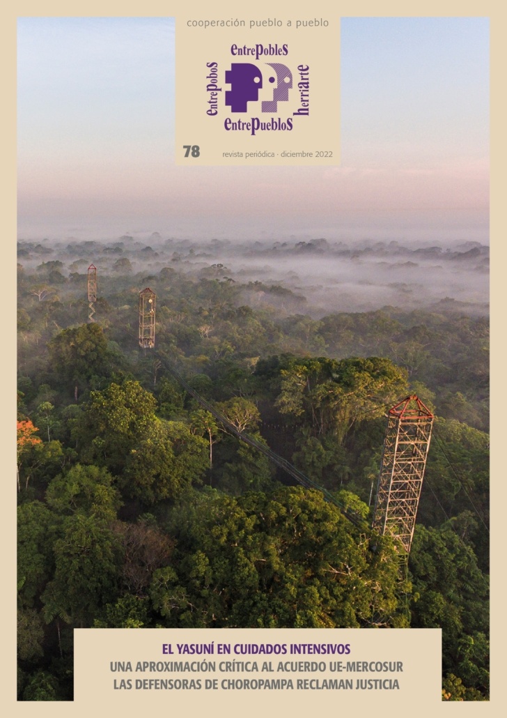 Desde Entrepueblos os traemos la nueva revista número 78 donde la activista Esperanza Martínez escribe acerca de la consulta del Yasuní, reserva de la biosfera amenazada por el mayor proyecto de explotación petrolera de Ecuador. Además, hablamos sobre derechos humanos en El Salvador, entrevistamos a las activistas de Mujeres de Frente e incluimos un reportaje sobre las consecuencias del vertido de mercurio en la comunidad peruana de Choropampa, que, 22 años más tarde, sigue reclamando justicia.